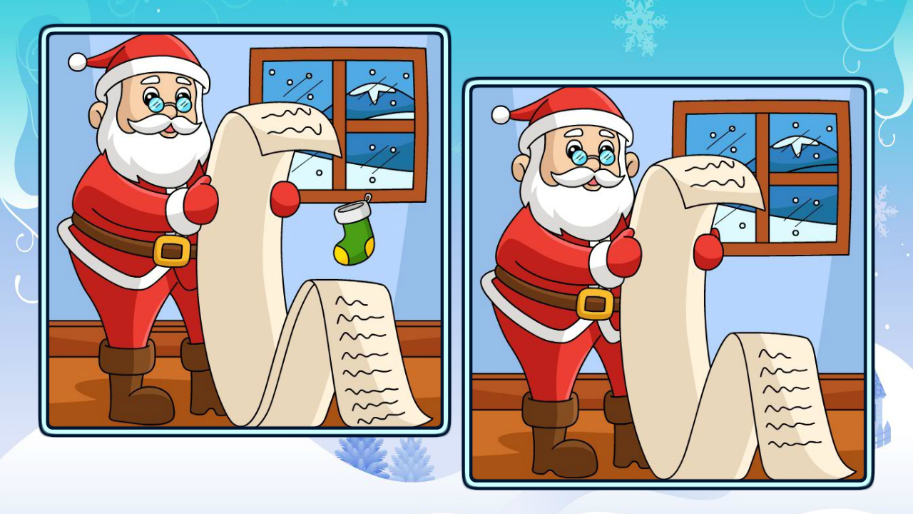 Dive into the holiday spirit with our "Christmas Spot the Difference" game! Uncover 5-10 distinctions between two identical festive scenes, but beware—each wrong click costs you 100 points. Race against the clock, as time is of the essence. Solve the puzzle before the timer hits zero to earn a delightful time bonus. Seek out holiday-themed nuances, from twinkling lights to subtle shifts in décor. Can you spot all the differences and triumph in this yuletide challenge? Merry spotting!